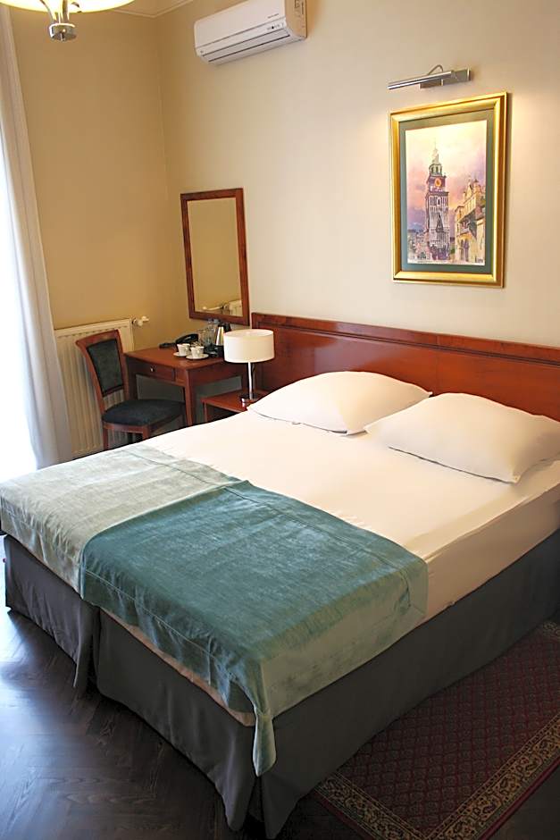 Room decorated in an individual style with wooden furniture and high quality fabrics.Some feature a beautiful view of Cracow.